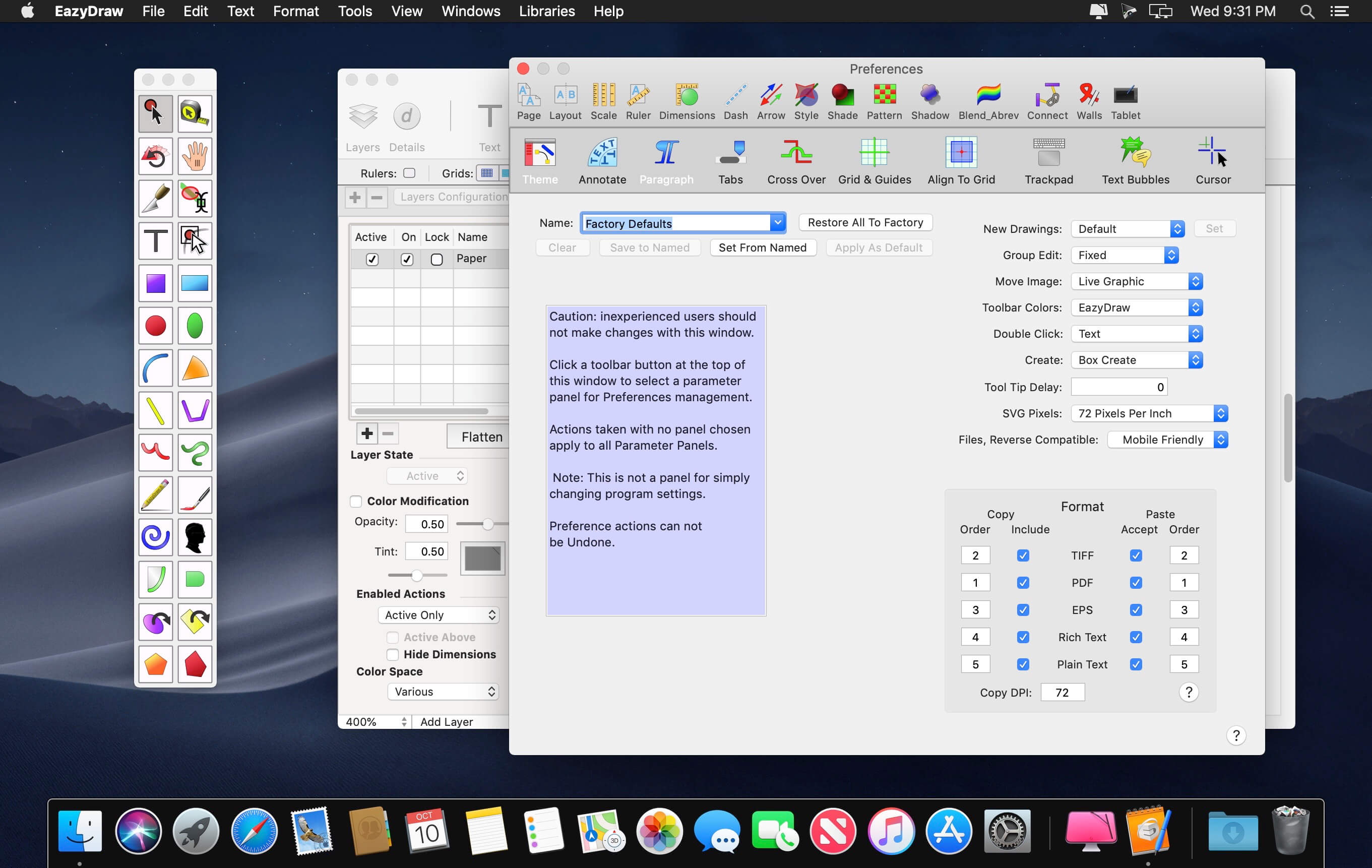 EazyDraw for Mac is a vector drawing application. For the full journey from Jaguar to El Capitan, EazyDraw has been the trail-blazing app for the new vector-drawing paradigm on the Mac.EazyDraw provides a balanced feature set that includes tools needed for technical drawing, Web and app graphic design, print publishing, logos, page – text layout and more. Easy enough for everyone, but with the depth your project will need.Includes comprehensive support for bitmap and vector graphic formats. Import and ungroup for editing PDF and EPS. Import and export SVG and now DXF. Preview and publish to EPS and TIFF with RGB or CMYK process colors. Exchange scaled CAD drawings with DXF. Publish Web graphics. Create Mac, iPhone, and iPad app-development graphics and icons.