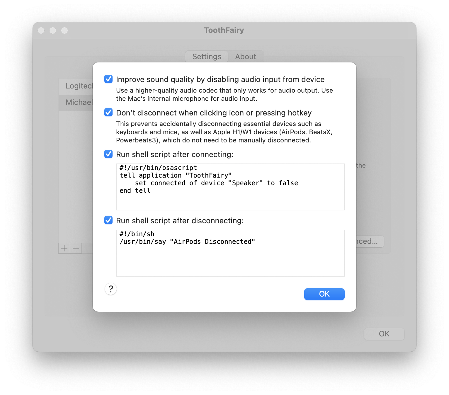 - Get the best audio quality. macOS will normally use the SCO codec if it thinks you’re going to use the microphone. ToothFairy can ensure that it uses the higher quality AAC codec when you only care about audio output: listening to music or video or playing a game.