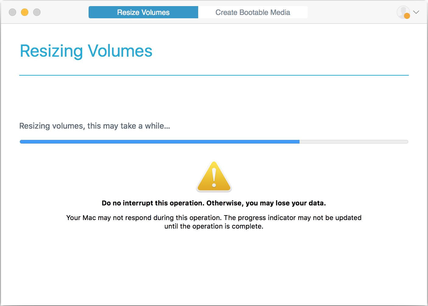 CampTune for Mac makes your Boot Camp Windows partition freely resizable. You may need to adjust the size of your Windows partition when, for example, you run out of disk space or want to install an application with particularly high storage requirements. CampTune provides a simple slider to redistribute storage space between Macintosh HD and Boot Camp Windows partitions. The resize operation is safe, fast and easy.