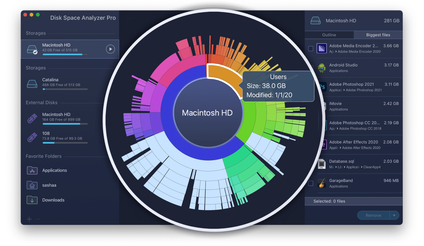 Disk Expert for Mac finds the biggest files and folders on your Mac. It scans your hard drive volumes and visually displays the disk space usage and makes a list of the most bulky content. It allows you to locate unneeded files and folders quickly using Mac OS X system tools. You can look for a file using Finder tab and preview the file using QuickLook. Disk Expert also lets you gather files and folders into collection, enabling you to rapidly move them to another place, or even delete them.