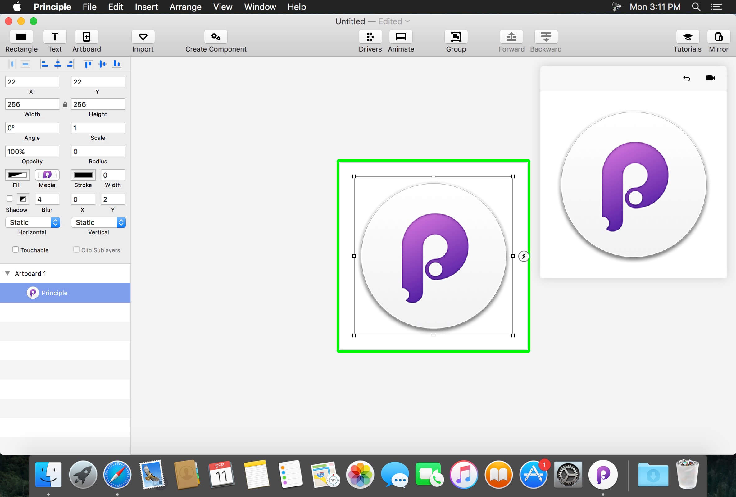 Principle is powered by Core Animation, the hardware-accelerated animation engine that iOS and OS X are built on. It also includes the Mac features you love: Full-screen mode, a Retina interface, and Auto Save — so you'll feel right at home.