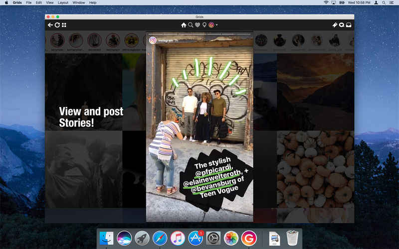 Grids for Instagram brings the best Instagram experience to your Mac, with Stories (first and only app that supports stories!), Direct Message and Large/Fullscreen photo and video viewing.