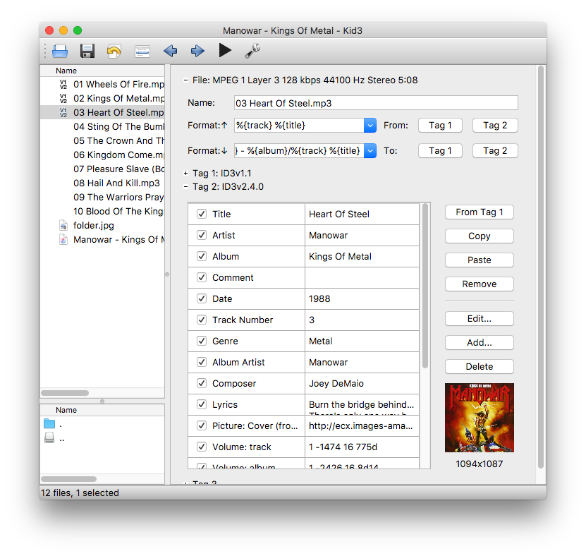 If you want to easily tag multiple MP3, Ogg/Vorbis, FLAC, MPC, MP4/AAC, MP2, Opus, Speex, TrueAudio, WavPack, WMA, WAV and AIFF files (e.g. full albums) without typing the same information again and again and have control over both ID3v1 and ID3v2 tags, then Kid3 for Mac is the program you are looking for.