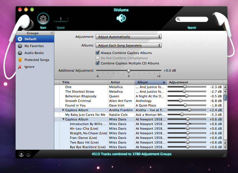 - Keeps Albums Intact: By using a sophisticated album detection algorithm iVolume optionally adjusts albums as a whole to keep the intention of the artist. This method is particularly suitable for adjusting gapless live albums.