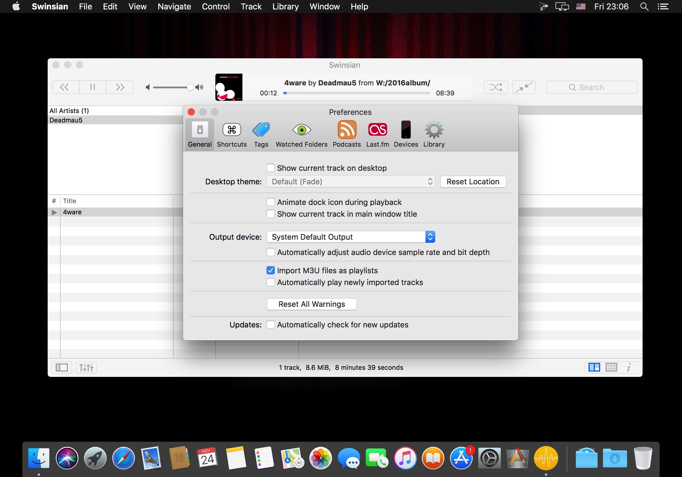 Swinsian for Mac is a sophisticated music player for Mac OS X with wide format support, folder watching and advanced tag editing and designed to be responsive even with the largest libraries.