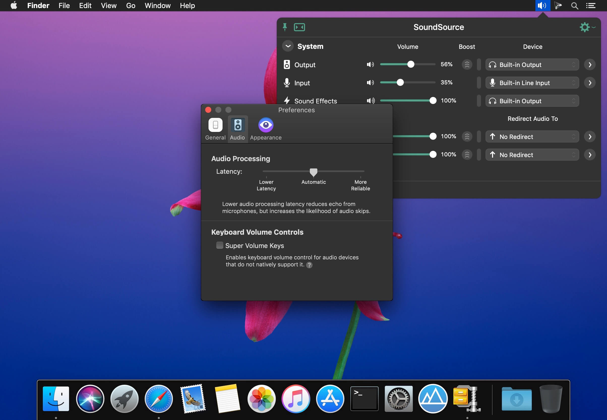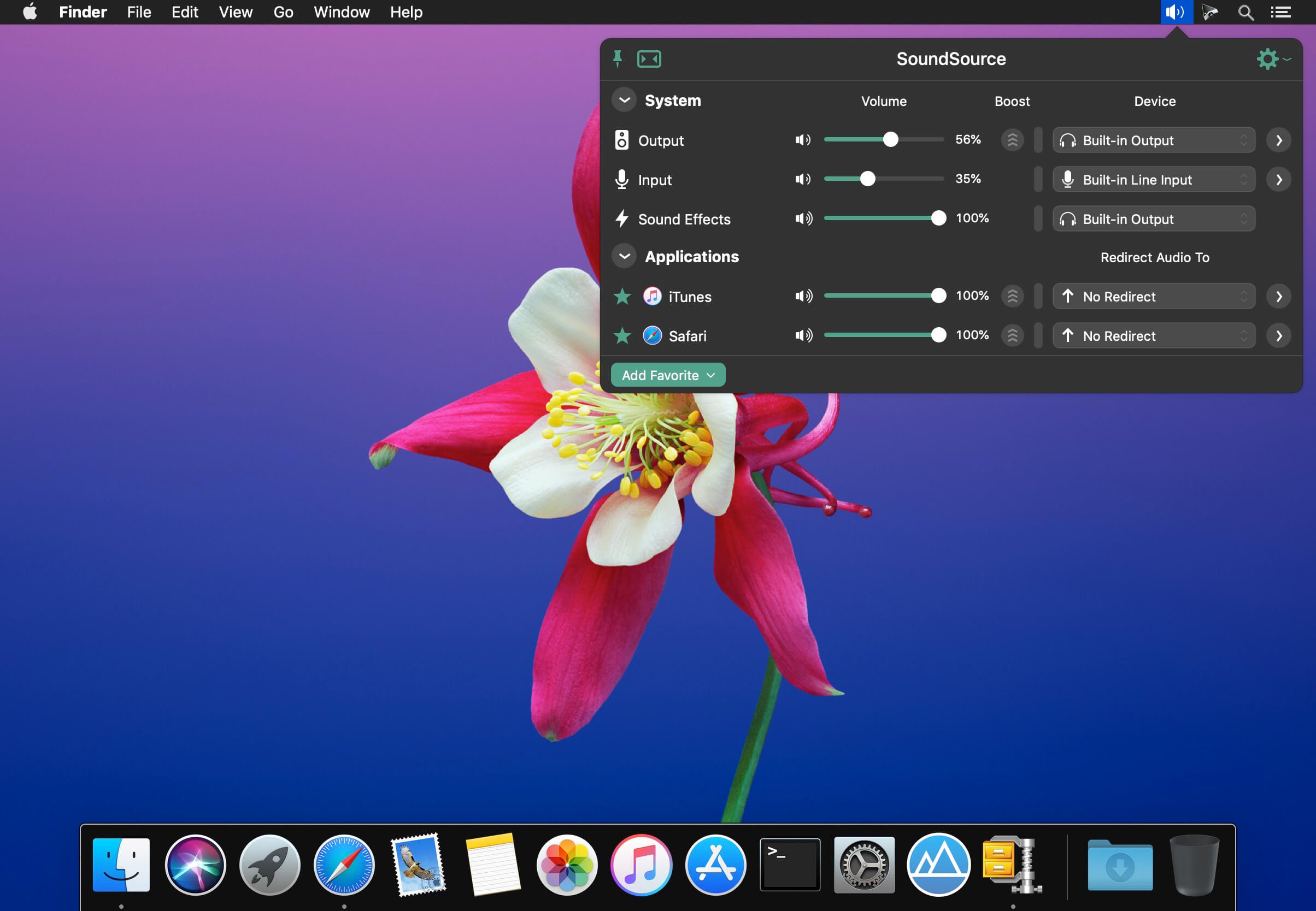SounceSource for Mac lets you adjust your input, output, and sound-effects devices and volume settings in mere moments, right from the menu bar. Enable soft play-thru of input devices to your desired output, so you can hear sound coming in through any microphone or other source. With SoundSource, you get fast access to your Mac's most important audio settings. Instant Audio-Device Switching - With just two clicks, you can switch the audio devices your Mac is using for input, output, and even sound effects. Fast Volume Control - SoundSource provides easy access to the volume controls for your audio devices as well. Audio Play-Thru, Too - SoundSource's Play-Thru window makes it easy to monitor the audio coming from any input device. Comprehensive - SoundSource gives you one place to go for all Mac's most important audio controls. At Your Fingertips - With SoundSource running in your menu bar, your audio controls are always available. Lightweight - When you don't need SoundSource, it stays out of your way.