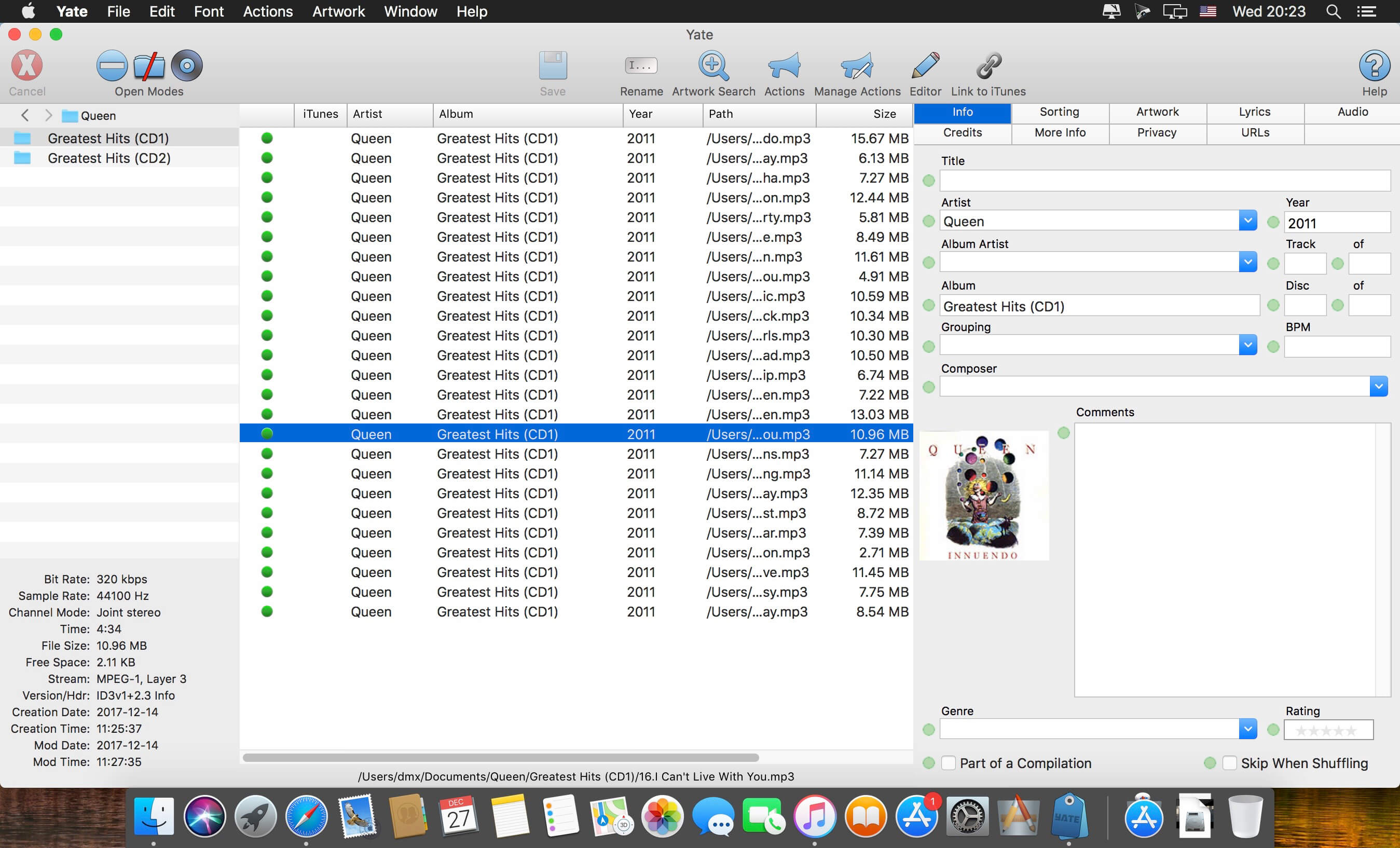 Yate for Mac was developed for people who want complete control over their tagging experience. Supports audio in AIFF, DFF, DSF, FLAC, M4A, M4B, MP3, MP4, STEM.MP4 and WAV files. Supports video in M4V and MP4.