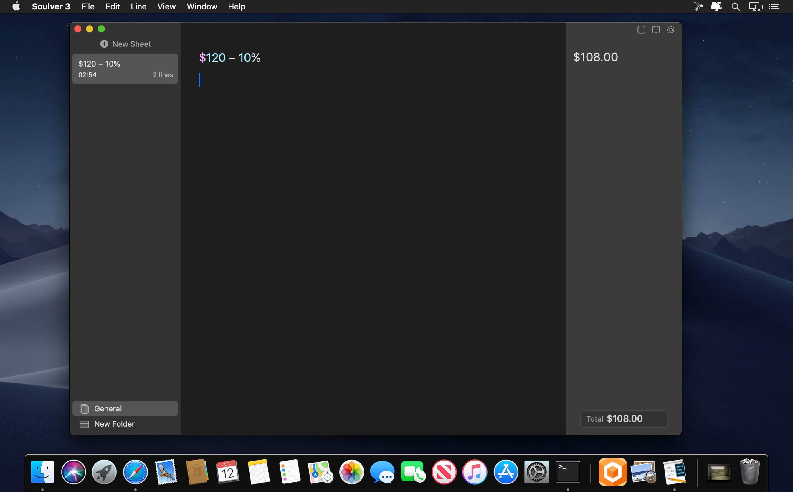 Soulver for Mac is a smart notepad with a built-in calculator. It gives instant answers to any calculations it finds in your text. It's a better way to work stuff out than with a traditional calculator, and a more lightweight tool for quick calculations than a spreadsheet.