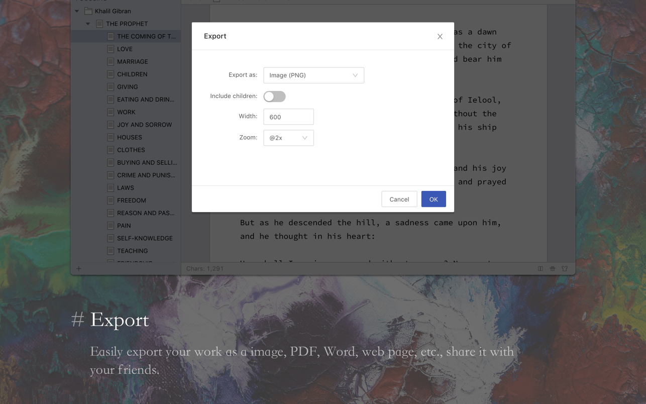 - Auto save while editing. You can backup all docs as a single file and restore from it later.