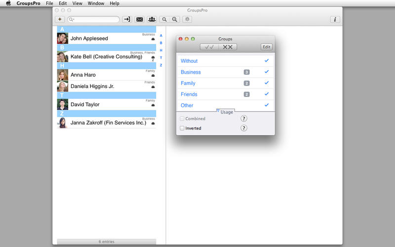 GroupsPro lets you manage contacts, contact groups, and create mailing lists for mass email. It is an excellent way to create and organize groups of contacts and create mailing lists. A mailing list contains members of groups or individual recipients.