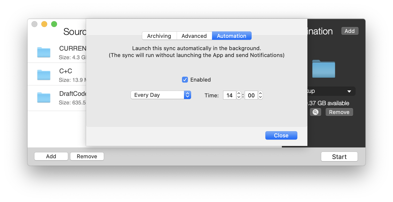 SmartBackup is an easy to use macOS utility to sync or backup folders and volumes. SmartBackup supports different configurations for multiple destinations, excludes, can archive deleted or changed files, and features built-in automation.
