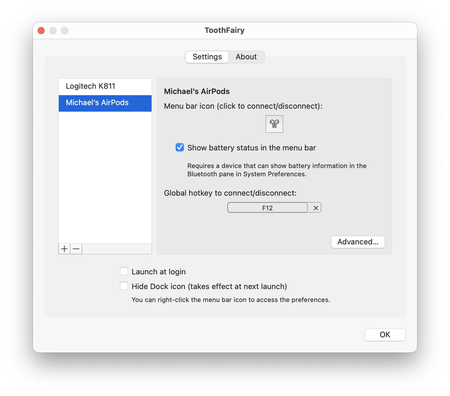 Tooth Fairy for Mac connect AirPods (or other Bluetooth headphones) to your Mac with a single click or keypress.