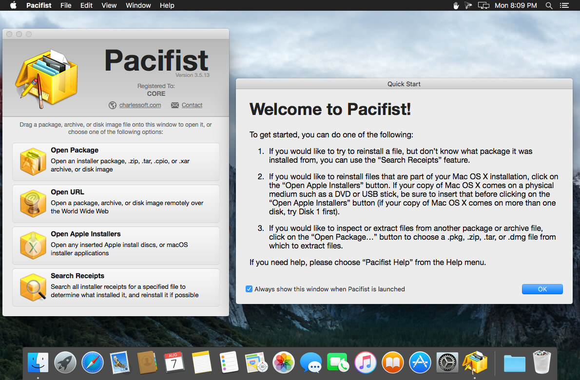 Pacifist is a powerful multi-tool for working with macOS package files, disk images, and file archives. Using Pacifist, you can: