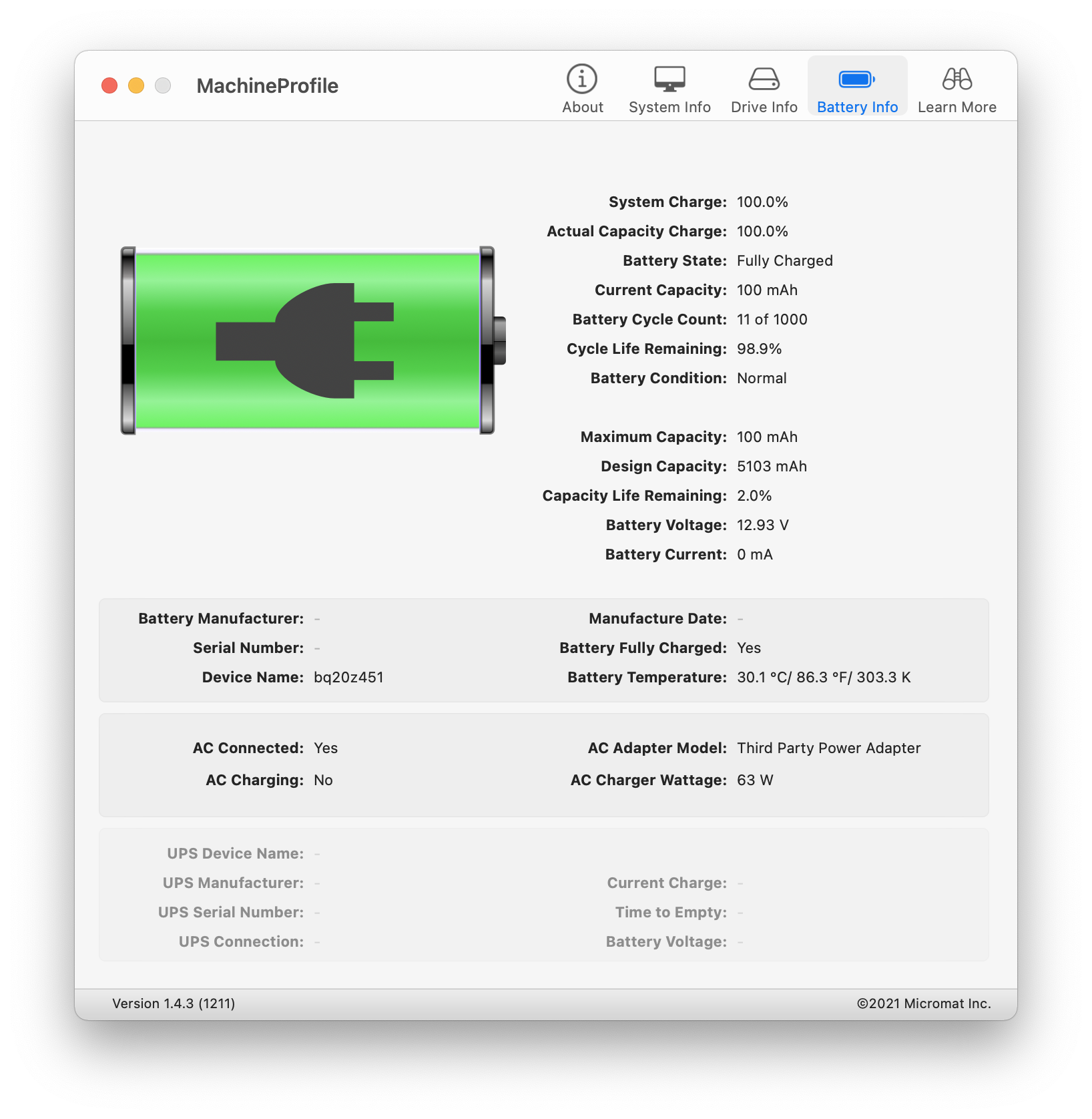 While MachineProfile is geared for all users who want quick access to the technical aspects of their Mac, first-time users can use MachineProfile to easily learn more about their system hardware. Macintosh consultants will also find it useful for assisting Mac users with maintaining and troubleshooting their systems.