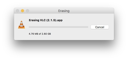 - Provides a warning dialog before files are erased (Press the Option key to bypass this warning)